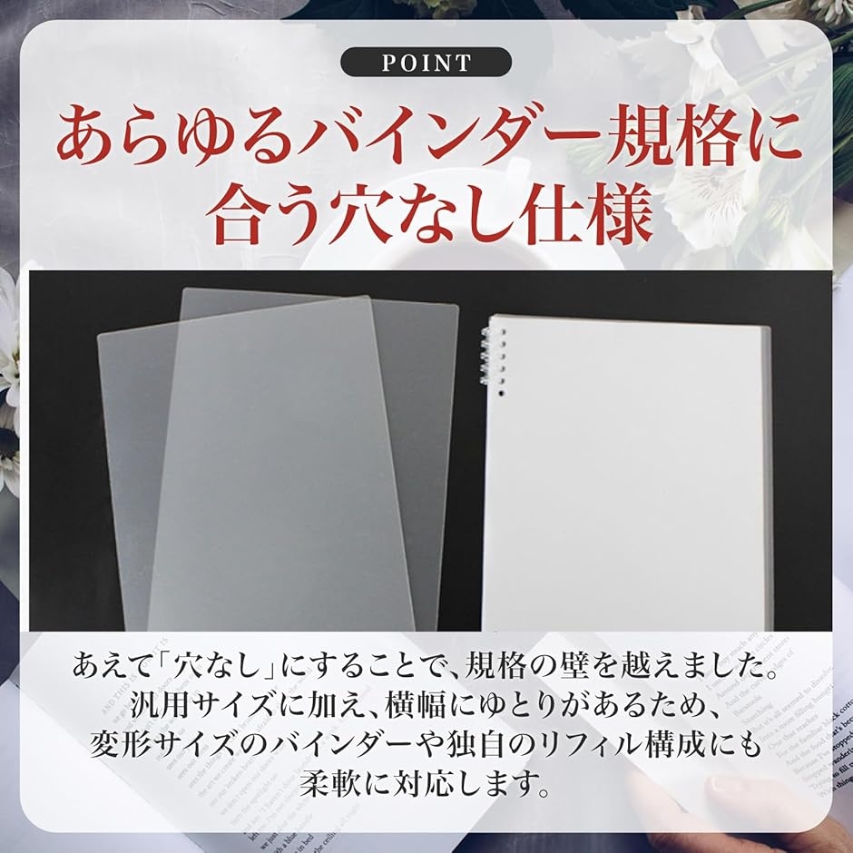 もちろん穴なしタイプなので、どんなバインダーにも適合。