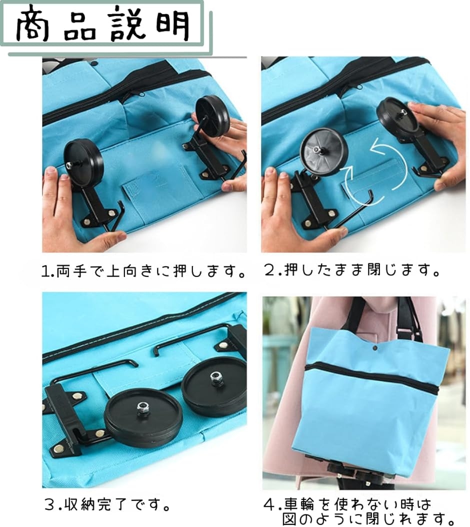 | 商品名 | キャリーカート 折り畳み 軽量 キャスター付きバッグ 大容量 お買い物バッグキャスター付き エコカート コンパクト ショッピングカート おしゃれ 折りたたみ式 |