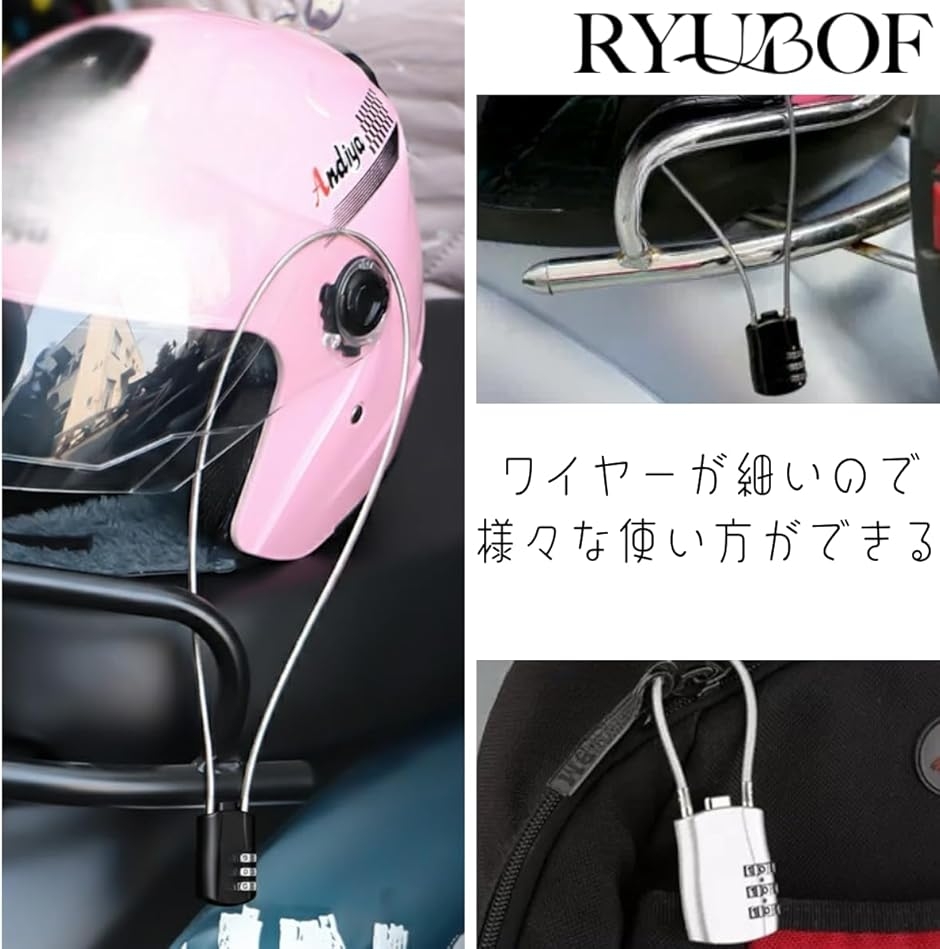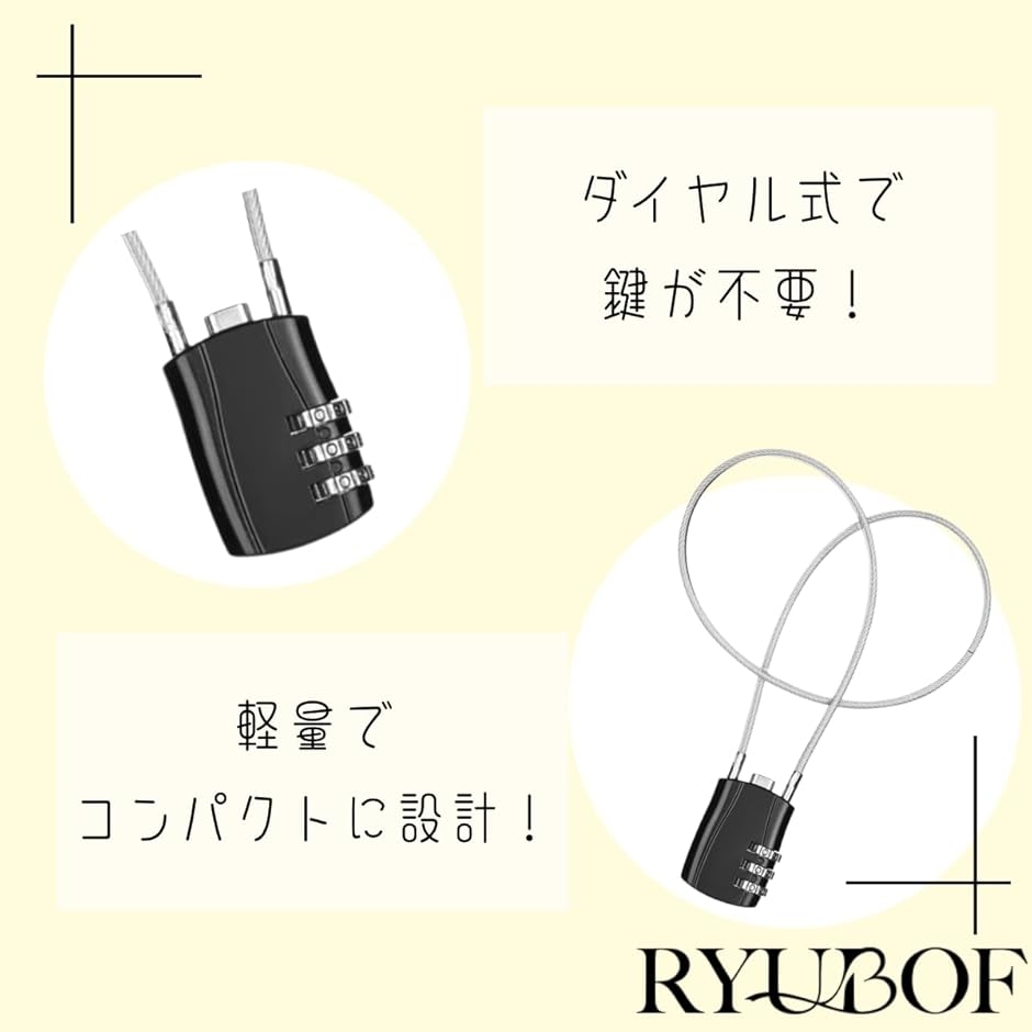 | 商品名 | RYUBOF ワイヤーロック 暗証番号 3桁 鍵不要 スーツケース ロック 盗難防止 自転車 バイク 旅行 出張 防犯 ダイヤル式 ワイヤー 南京錠 軽量 コンパクト 2個セット |