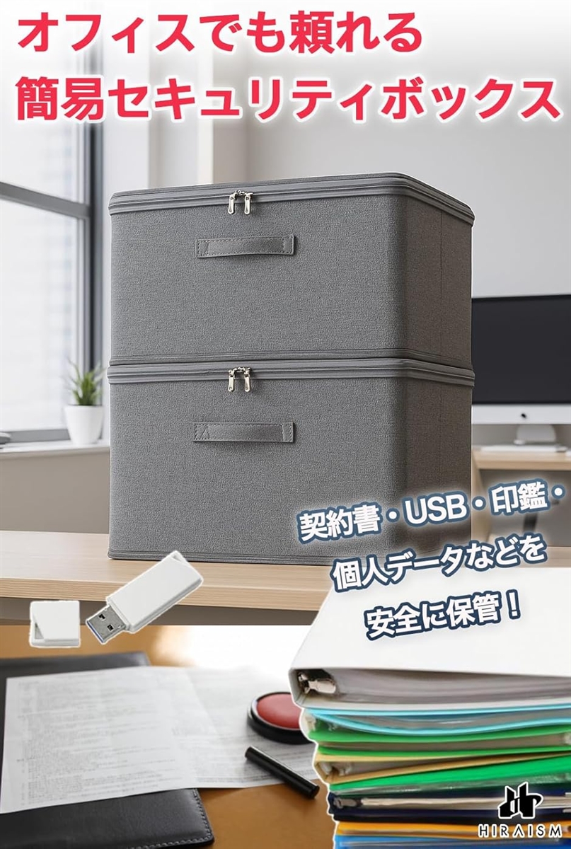 「オフィスでも頼れる簡易セキュリティボックス」在宅勤務やオフィスで、契約書・USB・印鑑・個人データなどを安全に保管。