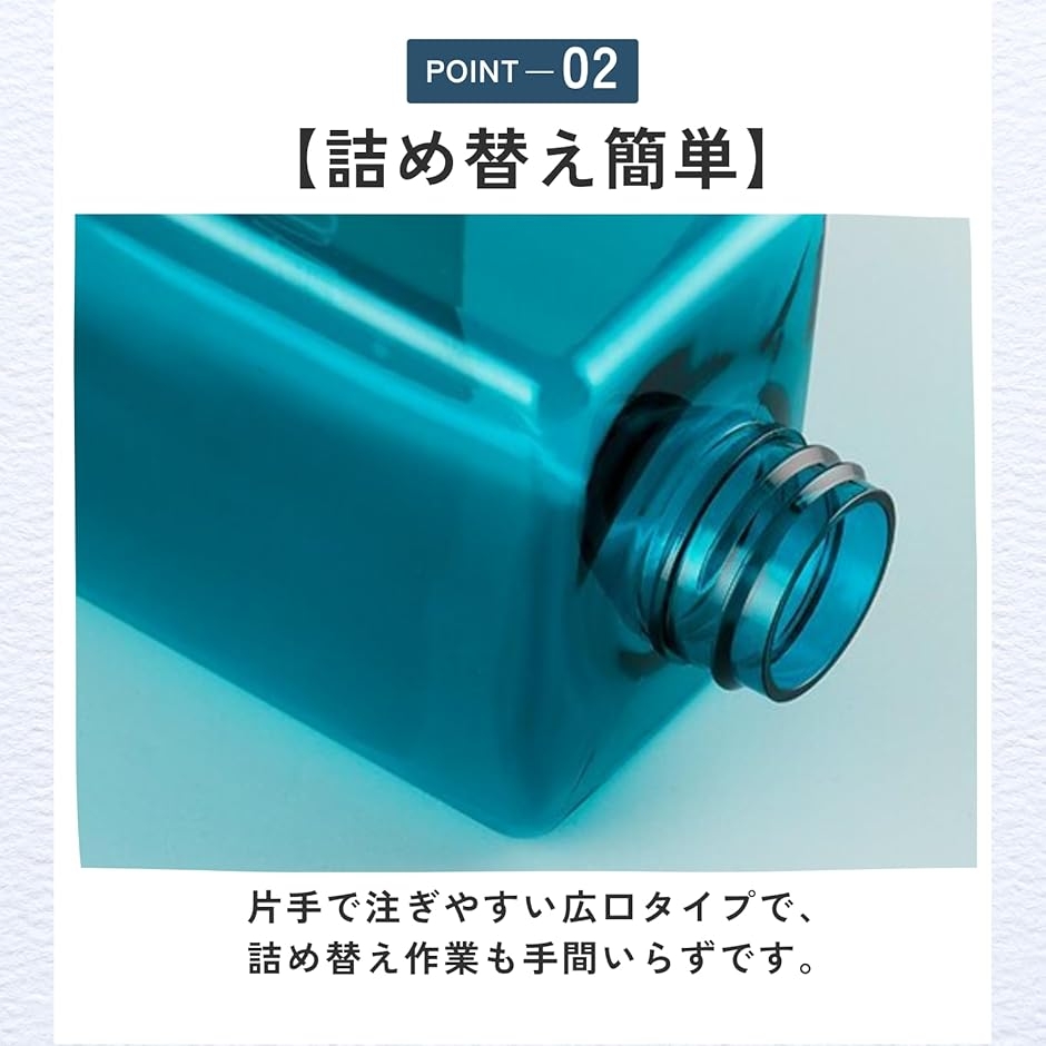 「詰め替え簡単」片手で注ぎやすい広口タイプで、詰め替え作業も手間いらずです。
