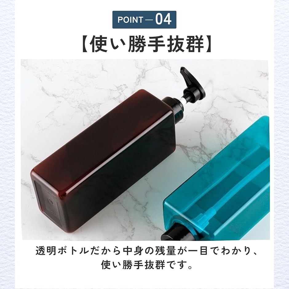 「使い勝手抜群」透明ボトルだから中身の残量が一目でわかり、使い勝手抜群です。