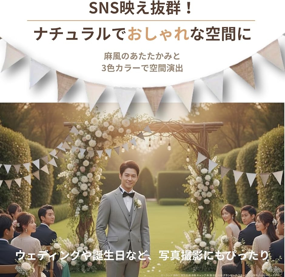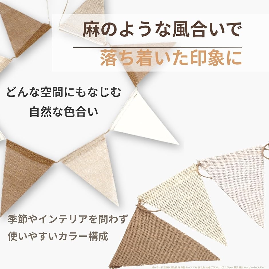 | 商品名 | ガーランド 旗飾り 誕生日 麻 布製 キャンプ 布 旗 北欧 結婚 フラッグ 茶系 屋外 ハッピーバースデー 2本入り |