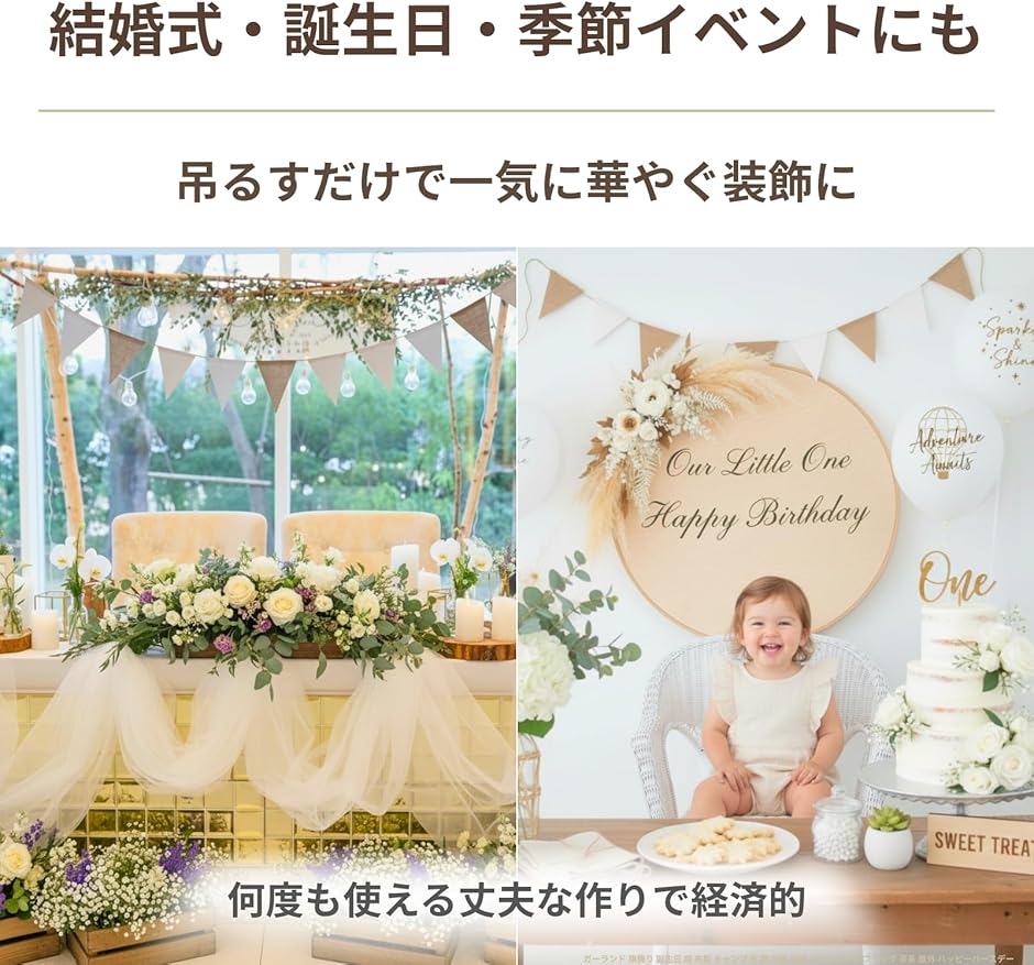 「多用途で使えるガーランド」 このガーランドは、使用シーンを選ばない汎用性の高さが魅力です。