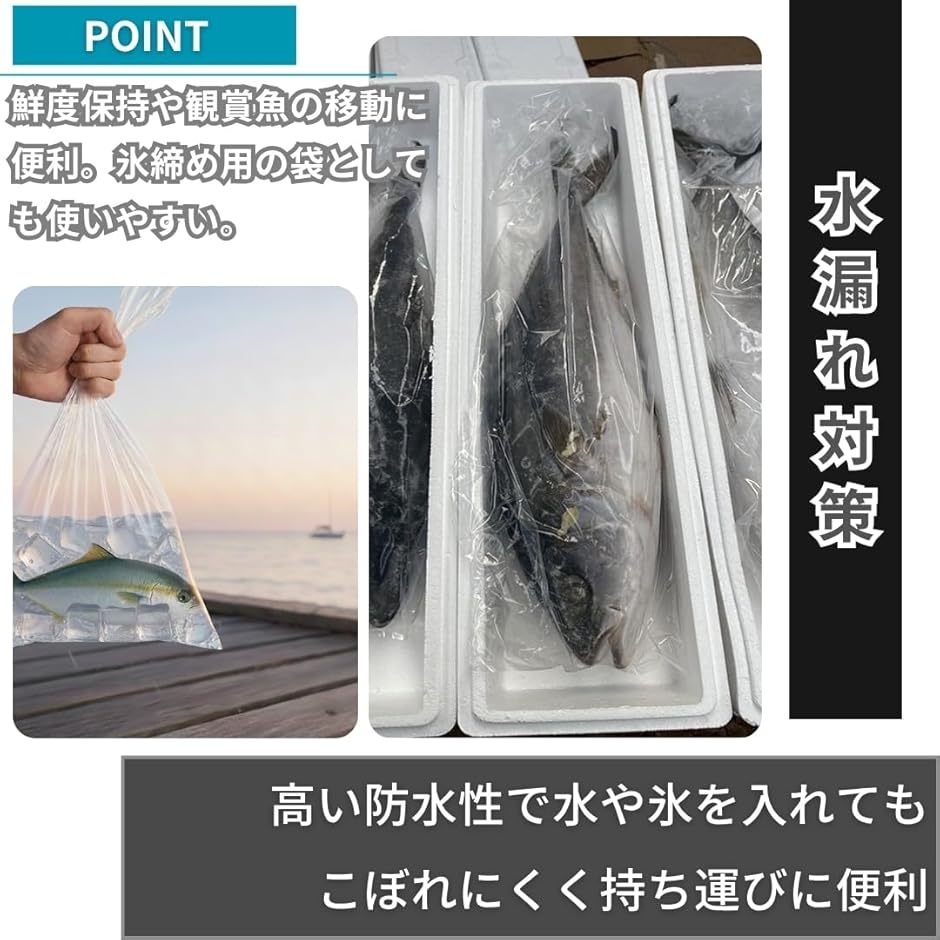 | 商品名 | 厚手 ビニール袋 100枚セット 0.14mm 極厚 魚を入れる袋 釣り 観賞魚 発送用 透明 |