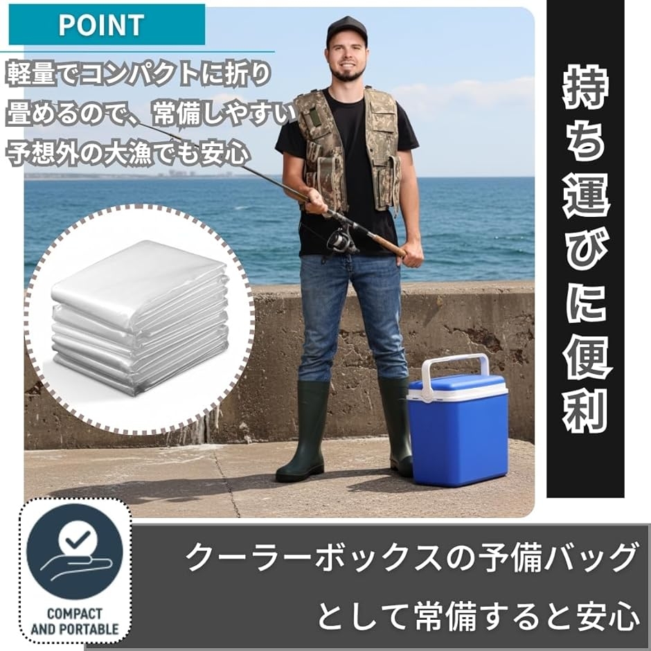 引っ越し時の一時移送や、氷締め用の水袋としても使いやすい設計です。