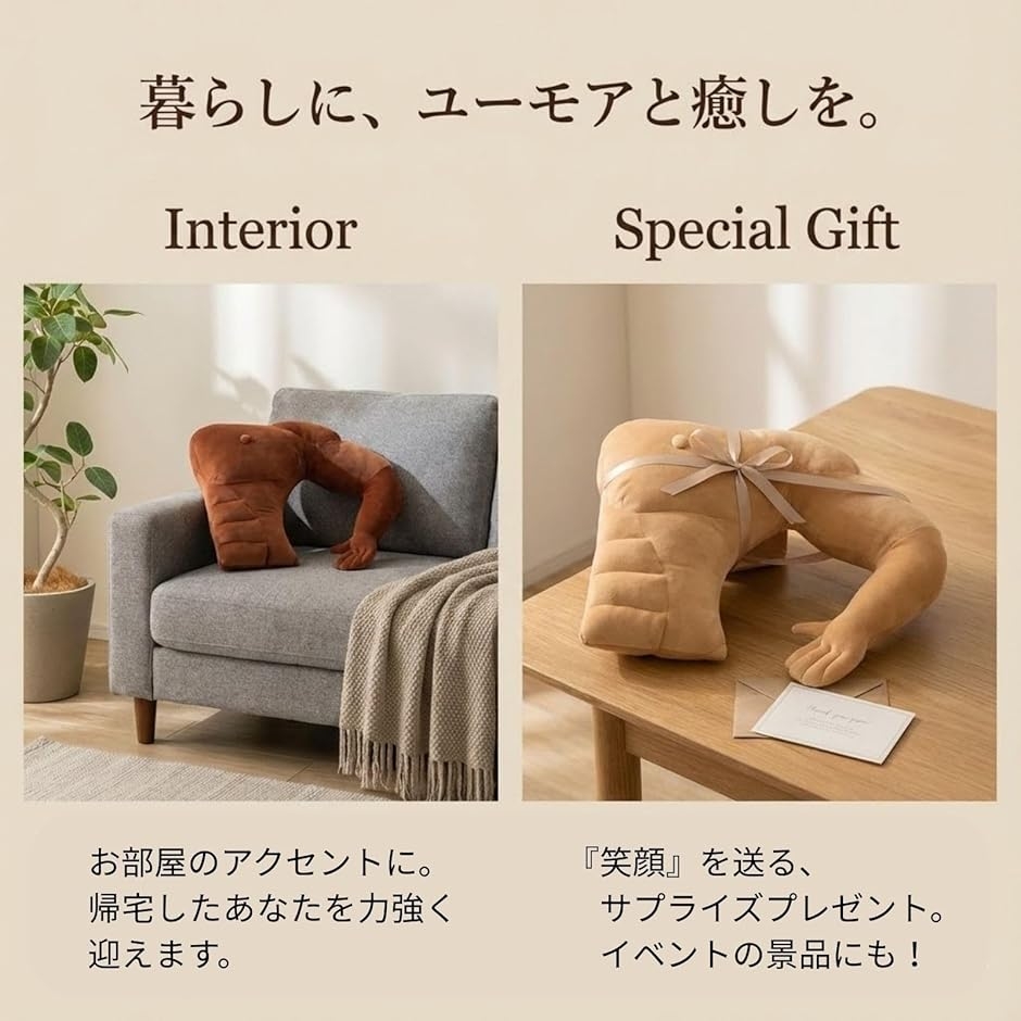 「ユニークで癒されるマッチョ抱き枕」 まるで逞しい腕に包まれているような新感覚の抱き枕。