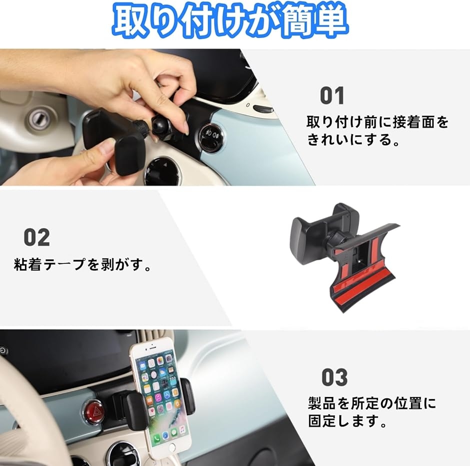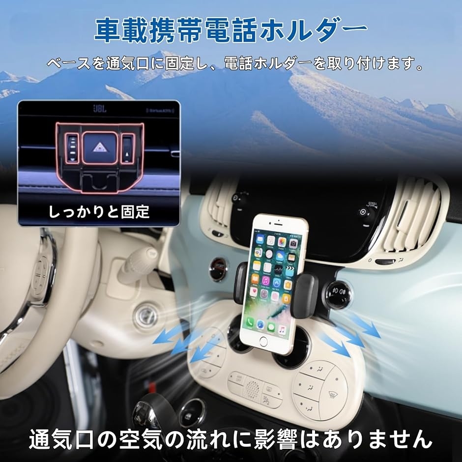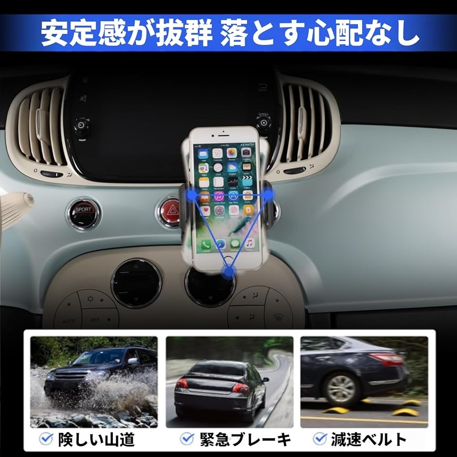 | 商品名 | フィアット 500 2007年〜現行に専用 スマホホルダー 車 携帯電話ホルダー スマートフォン用 車載ホルダー スマホ スタン 360度回転 自由調節 取り付け簡単 新版 全機種に対応 カー用品 車用アクセサリー |