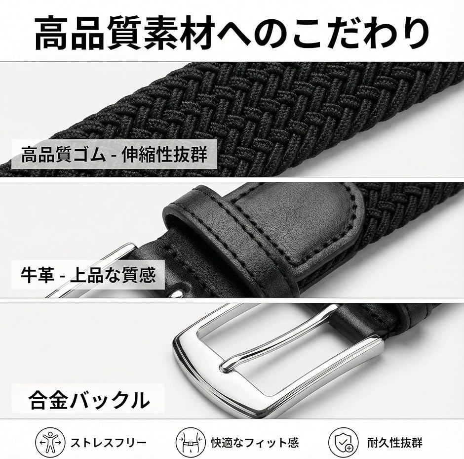 | 商品名 | 学生ベルト 黒 高校生 中学生 大学生 サラリーマン 《ストレッチ素材でストレスフリー》男子 スクールベルト《伸縮ゴムでフィット》メッシュベルト ゴムベルト |