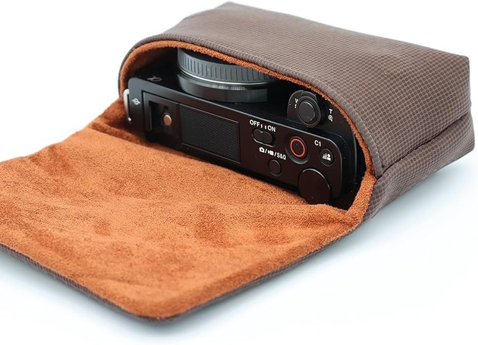 裏地には、ソフトで静電気防止機能を備えたフェイクスエード生地を使用していており大切なカメラを傷、衝撃から優しく保護します。