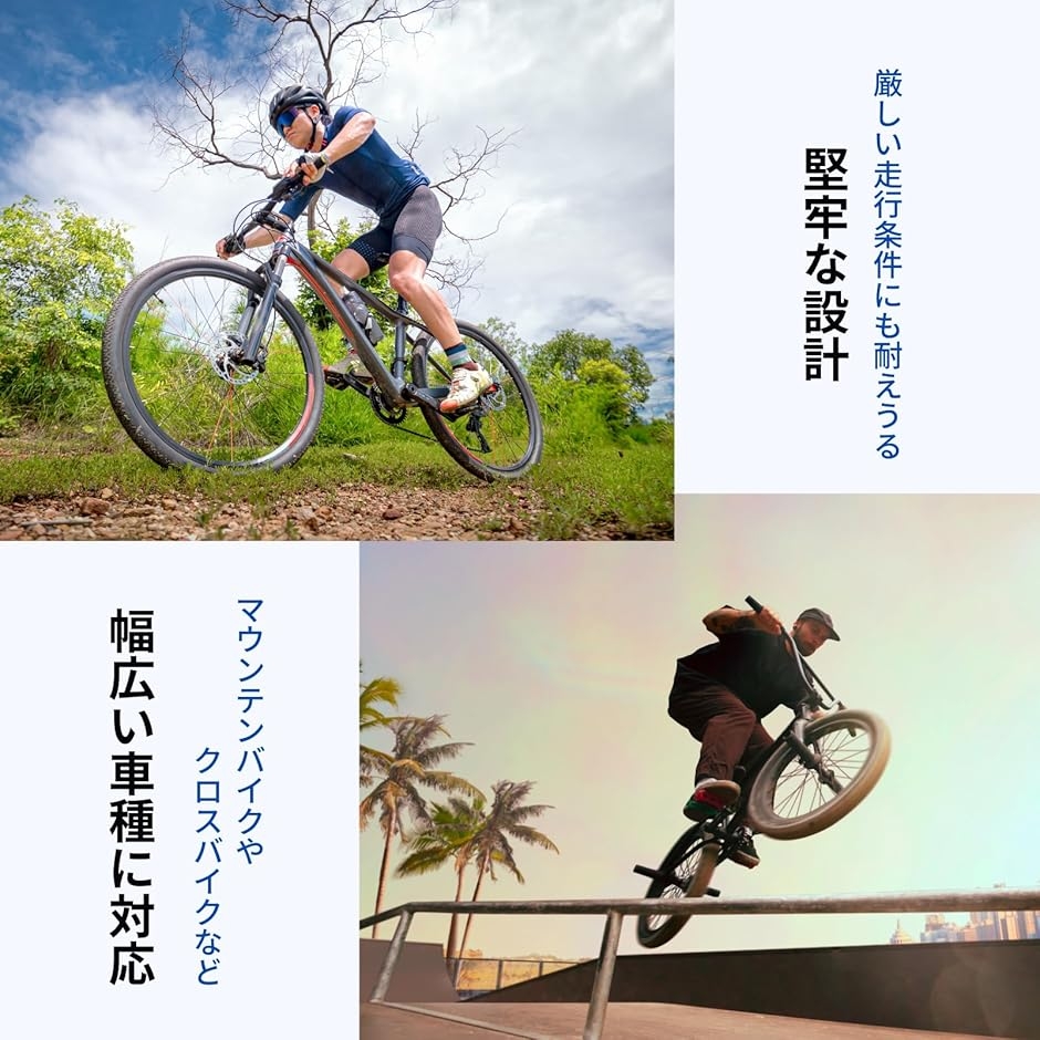 厳しい走行条件にも耐えうる堅牢な設計で、MTB(マウンテンバイク)やクロスバイクなど幅広い車種に対応します。