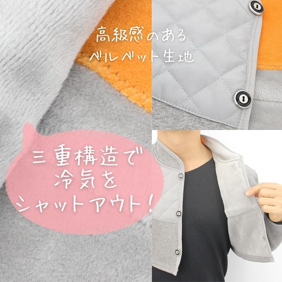 表地・中綿・裏地の三層構造で保温性が高く、肩から背中までぽかぽか。