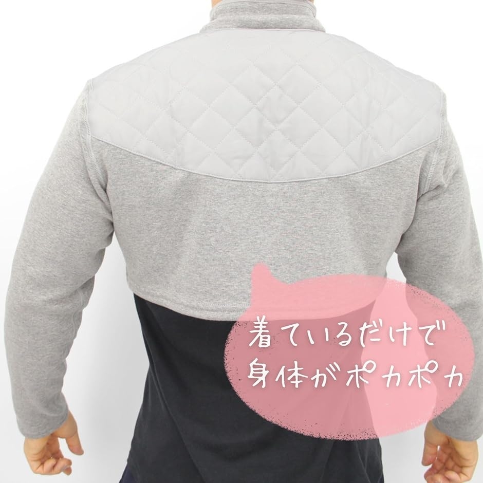 表地・中綿・裏地の三層構造で保温性が高く、肩から背中までぽかぽか。