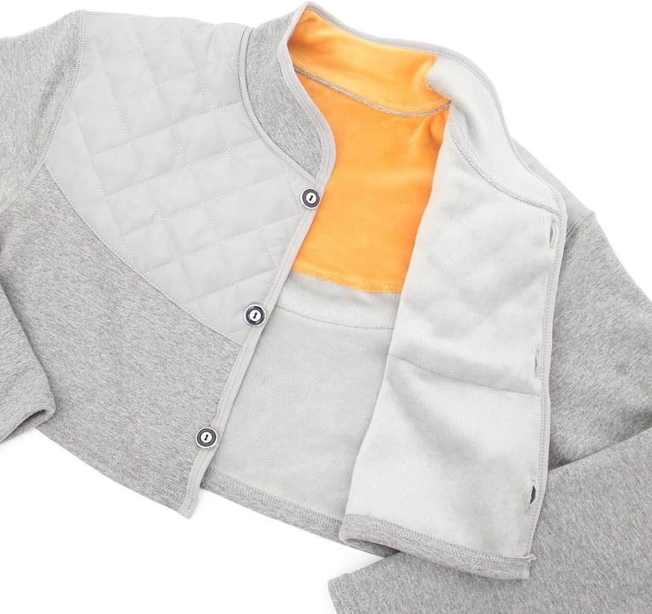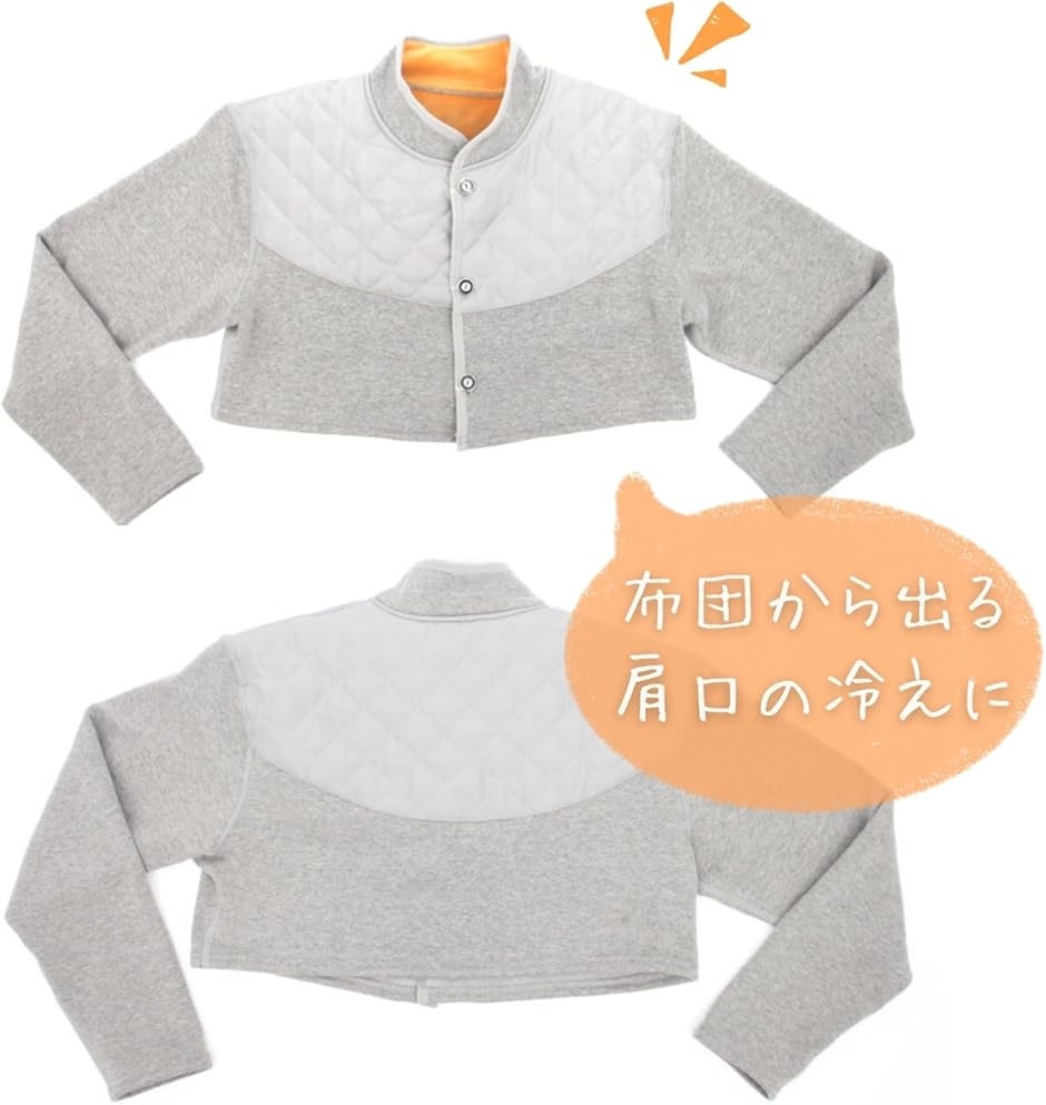 表地・中綿・裏地の三層構造で保温性が高く、肩から背中までぽかぽか。