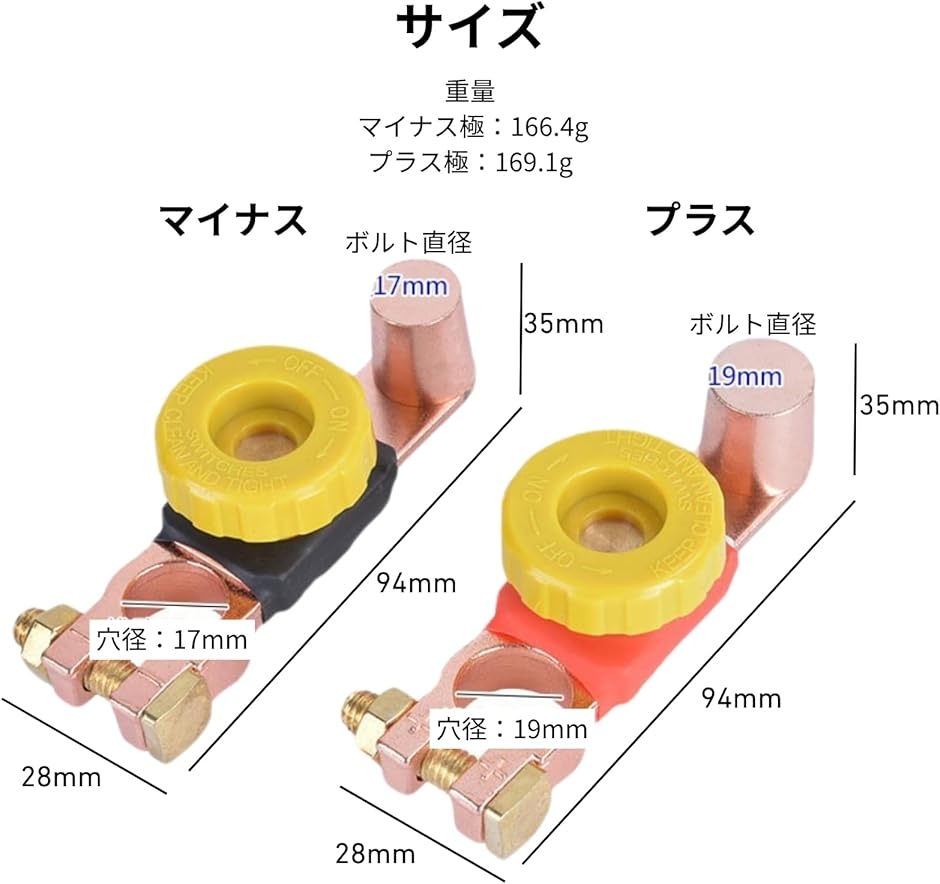 | 商品名 | バッテリーカットターミナル 真鍮 12V/24V対応 暗電流 バッテリー上がり防止 車 バイク キャンピングカー用 オフスイッチ カットオフ |