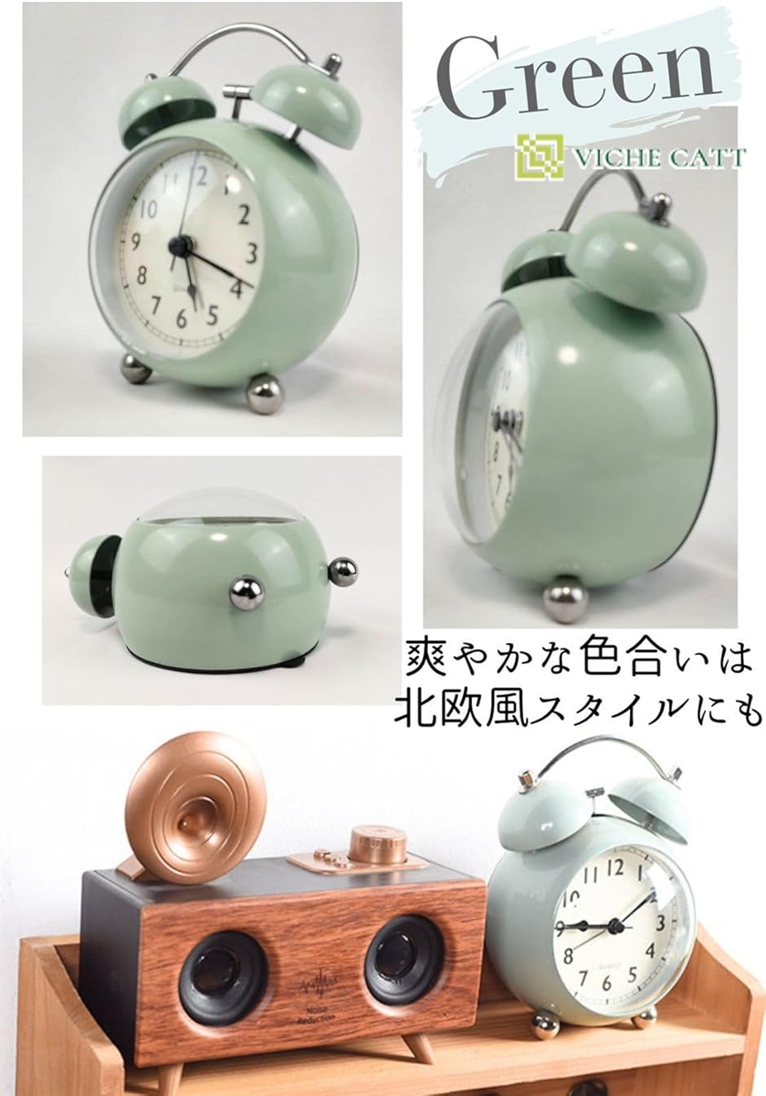 また、時計は小さくてもアラームのベル音はしっかり。ベルのレトロな目覚まし音は寝坊しがちな朝をサポート。 カラーはナチュラルインテリアに。