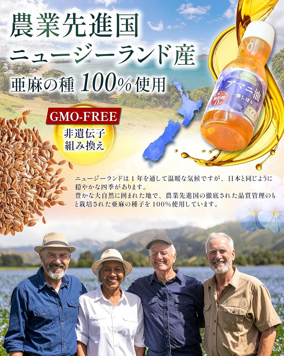 ニュージーランド産の亜麻仁を100%使用しています。