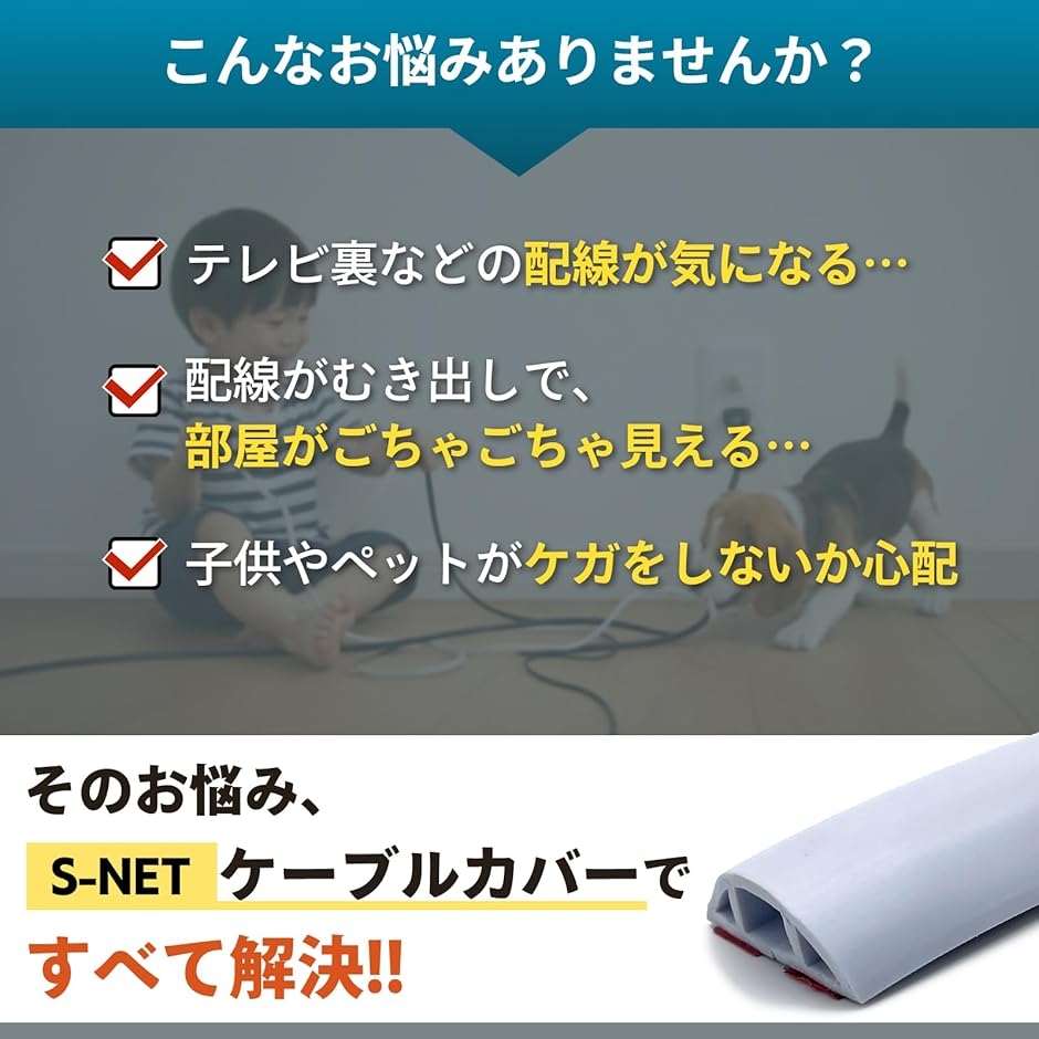 リビングや寝室、デスク周りの配線整理はもちろん、ペットの噛みつき防止やお子様の転倒対策としても活躍し、安全面にも配慮できます。