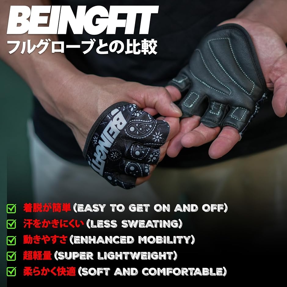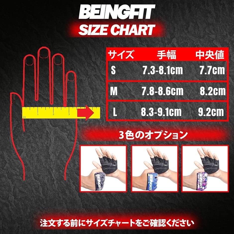 3つのユニークなデザイン: Beingfitのトレーニンググローブは、あなたのスタイルに合わせた3つのユニークデザイン。