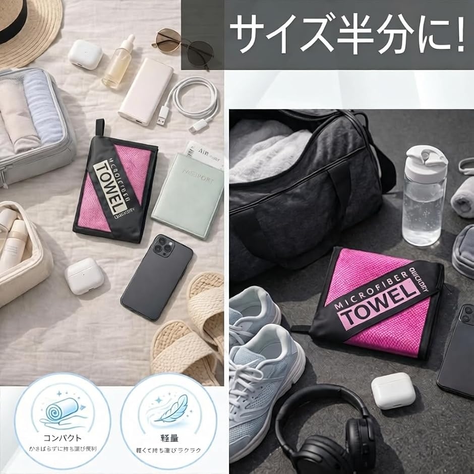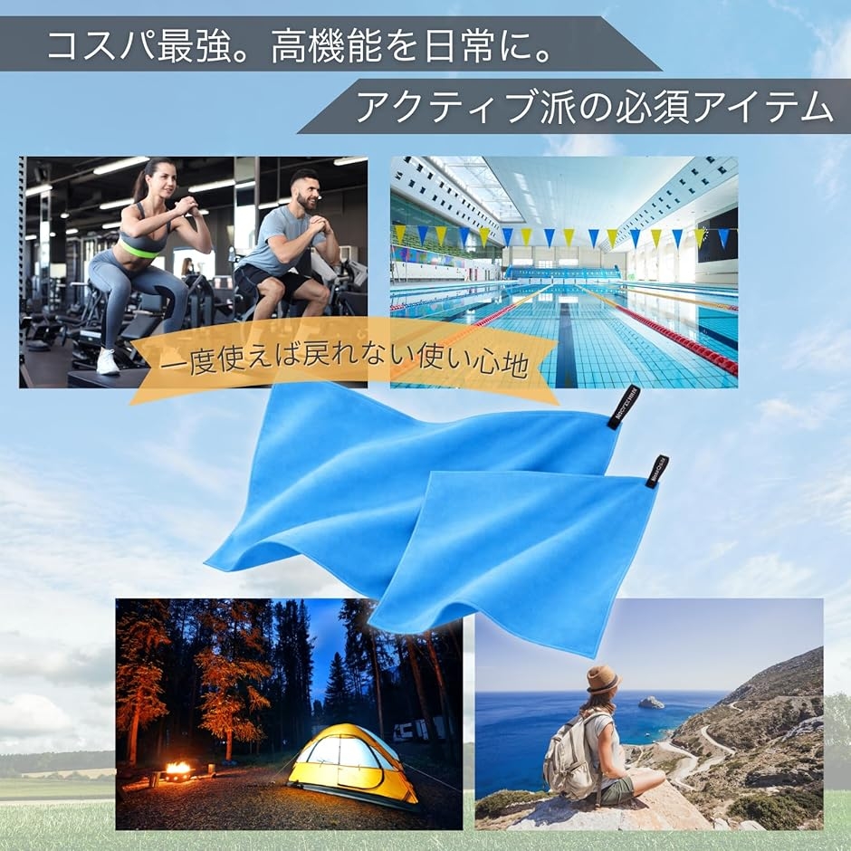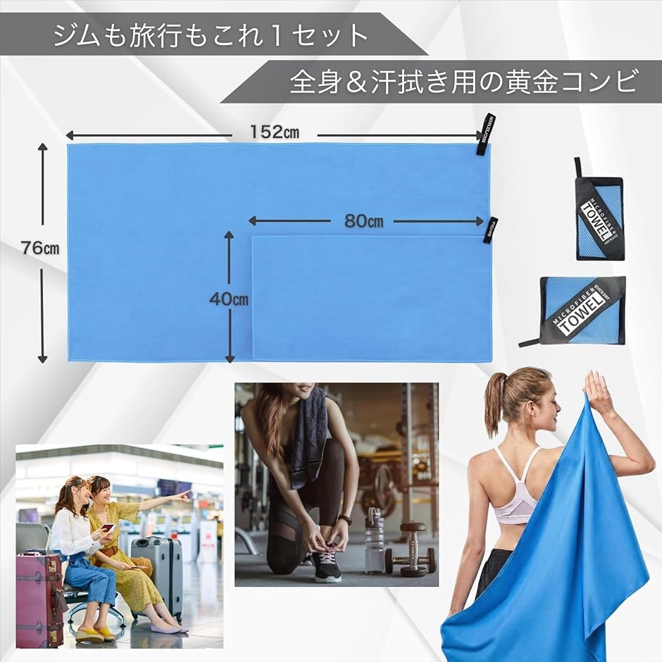 | 商品名 | 速乾タオル 2枚セット マイクロファイバー 吸水 軽量 ジム 水泳 旅行用 収納袋付 |