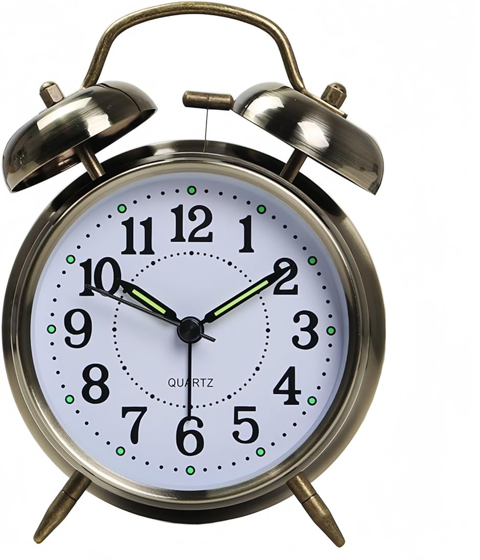 「目覚まし時計 常夜灯」このおしゃれなアナログ ベル付きアラーム 時計は、卓上時計としても使用できます。