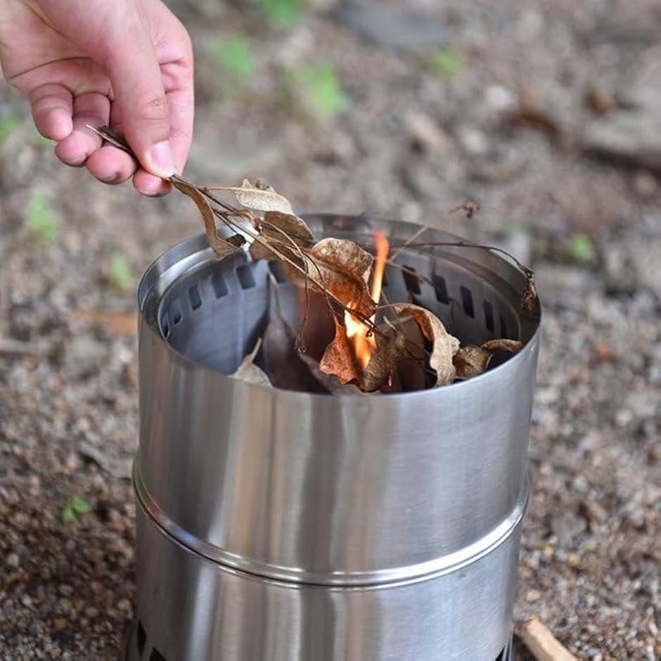 緊急時にも役立つこの小型ストーブは、焚き火台としての機能も兼ね備えています。