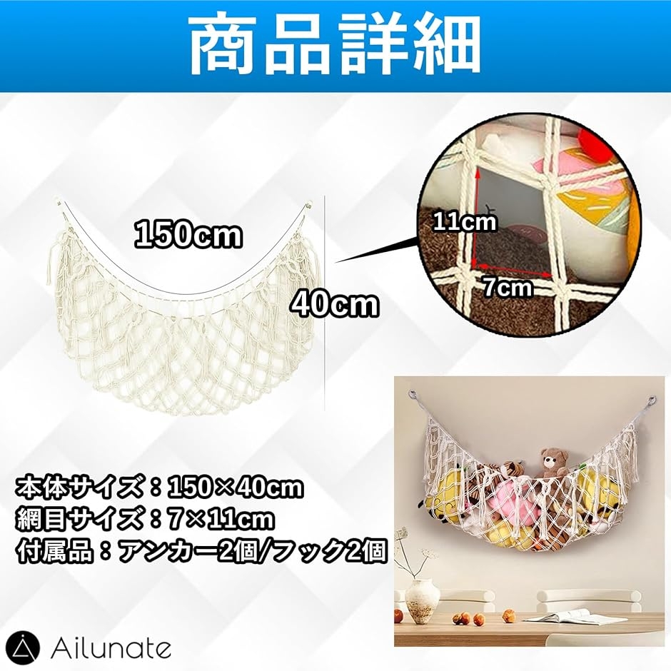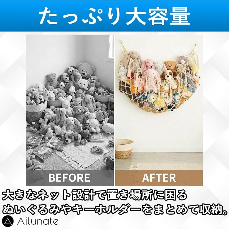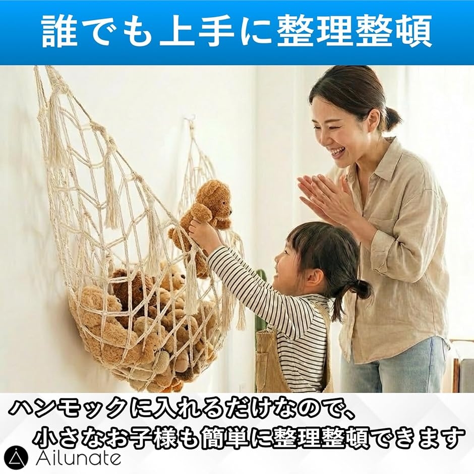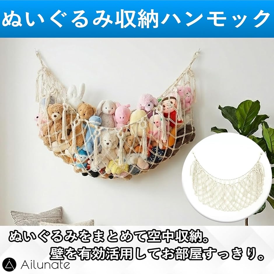 | 商品名 | ぬいぐるみ 収納 ハンモック 吊り下げ 壁掛け 整理 ネット 大容量 コーナー フック付き 小物 マスコット人形 片付け 室内 |