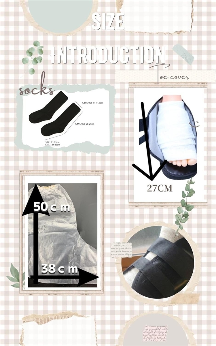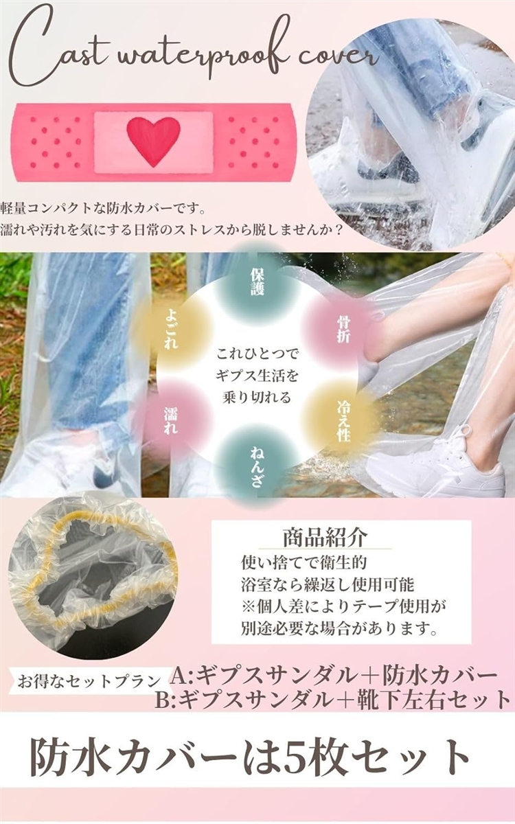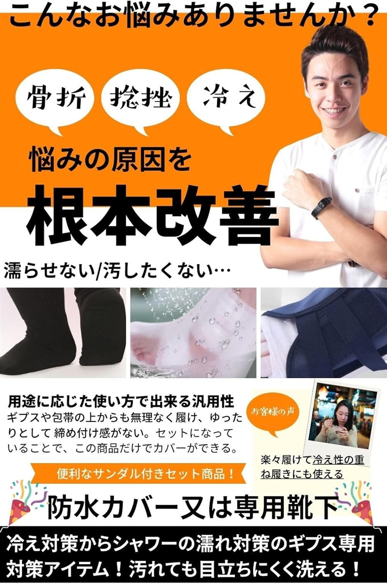 「内容」 ギプス防水カバー 5枚 サイズ:長さ50CM 材質:ビニール + ギプスサンダル 1個 材質:ナイロン