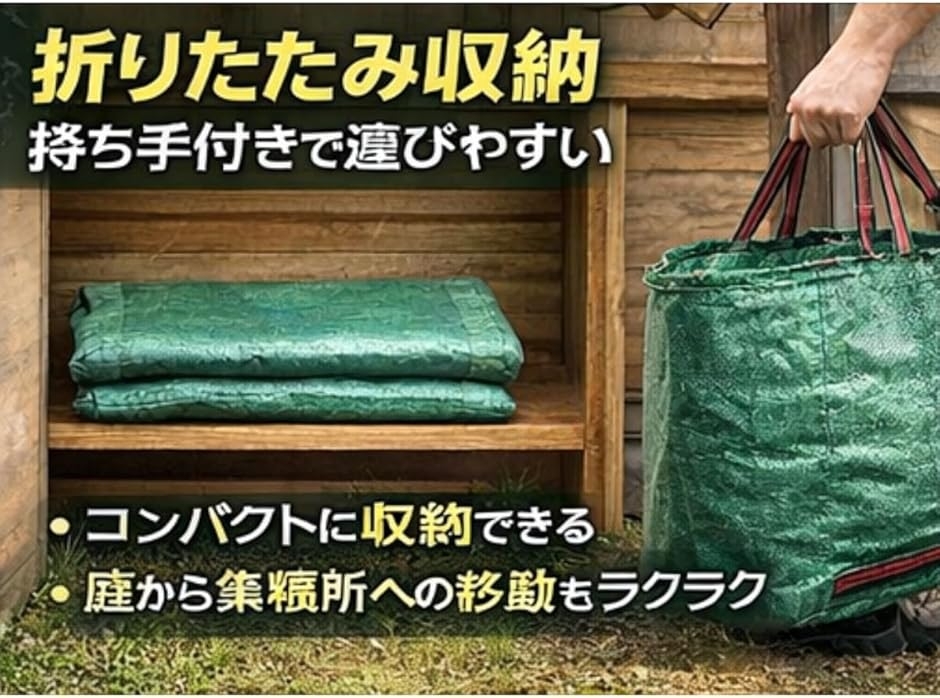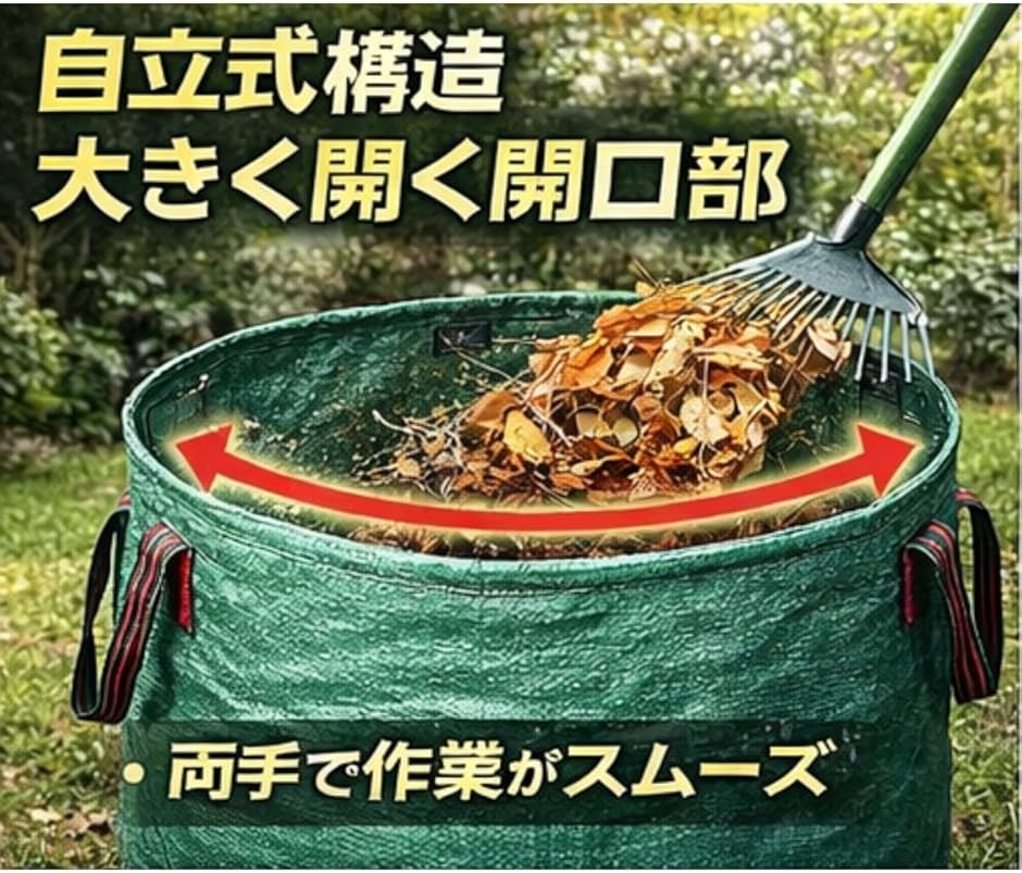 庭から集積場所への移動や、一時的な保管時にも扱いやすくなっています。