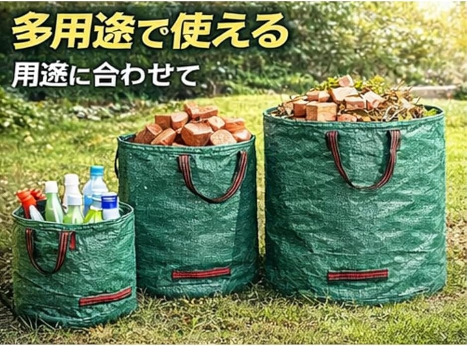庭作業以外にも使える多用途仕様 庭掃除だけでなく、家庭用の屋外作業、資材の一時収納、清掃用バッグなど幅広い用途で活用できます。