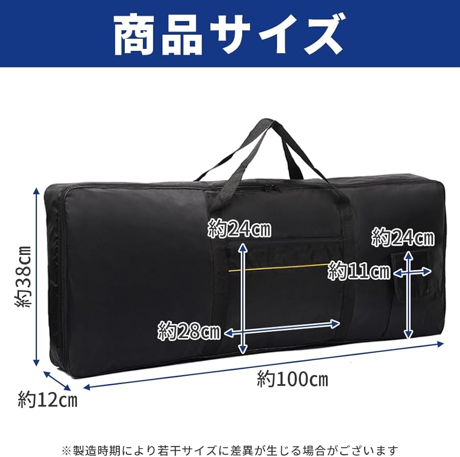 「セット内容」61鍵キーボードケース x1点 「サイズ(約)」100cmx38cmx12cm 「仕様」61鍵 「材質」オックスフォード 「カラー」ブラック