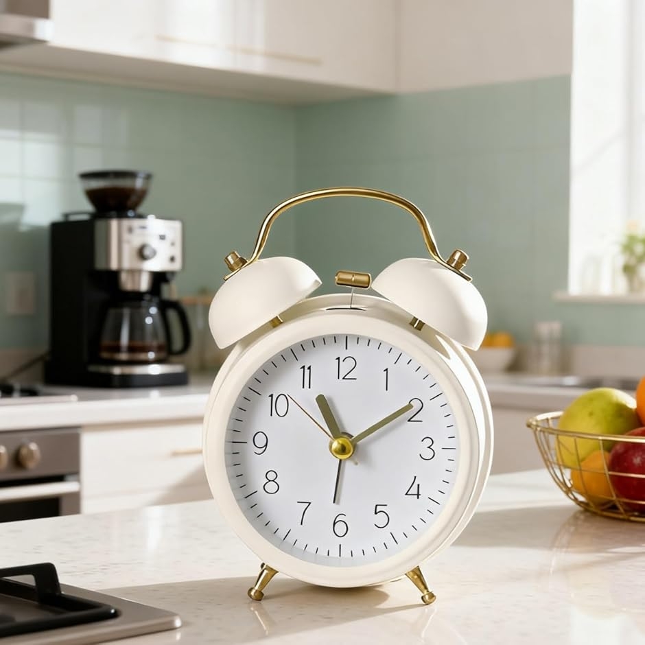 アナログでおしゃれな目覚ましどけいで、双鈴なので、左右のベルをハンマーが叩きます。