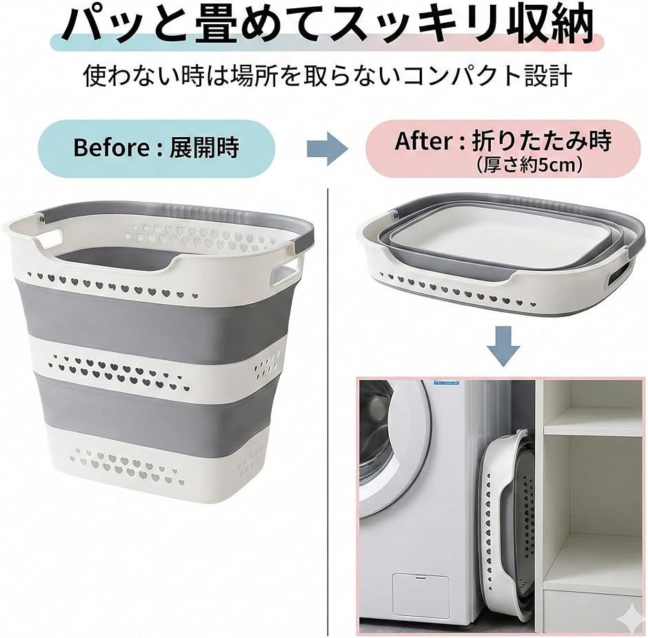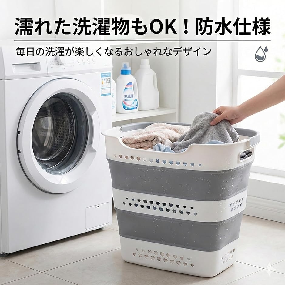 狭い洗面所でも空間を広く使える、省スペースに特化した洗濯かごです。