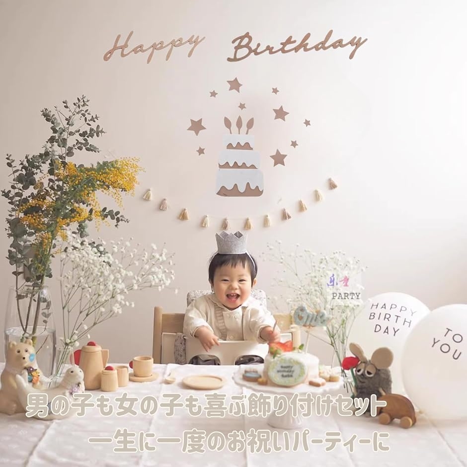 誕生日や記念日を華やかに演出する、シンプルでナチュラルなデザインのバースデーガーランドです。