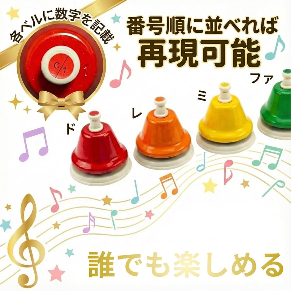 | 商品名 | ミュージックベル ハンドベル 楽器 ベル 知育玩具 モンテッソーリ カラフル 8音セット |