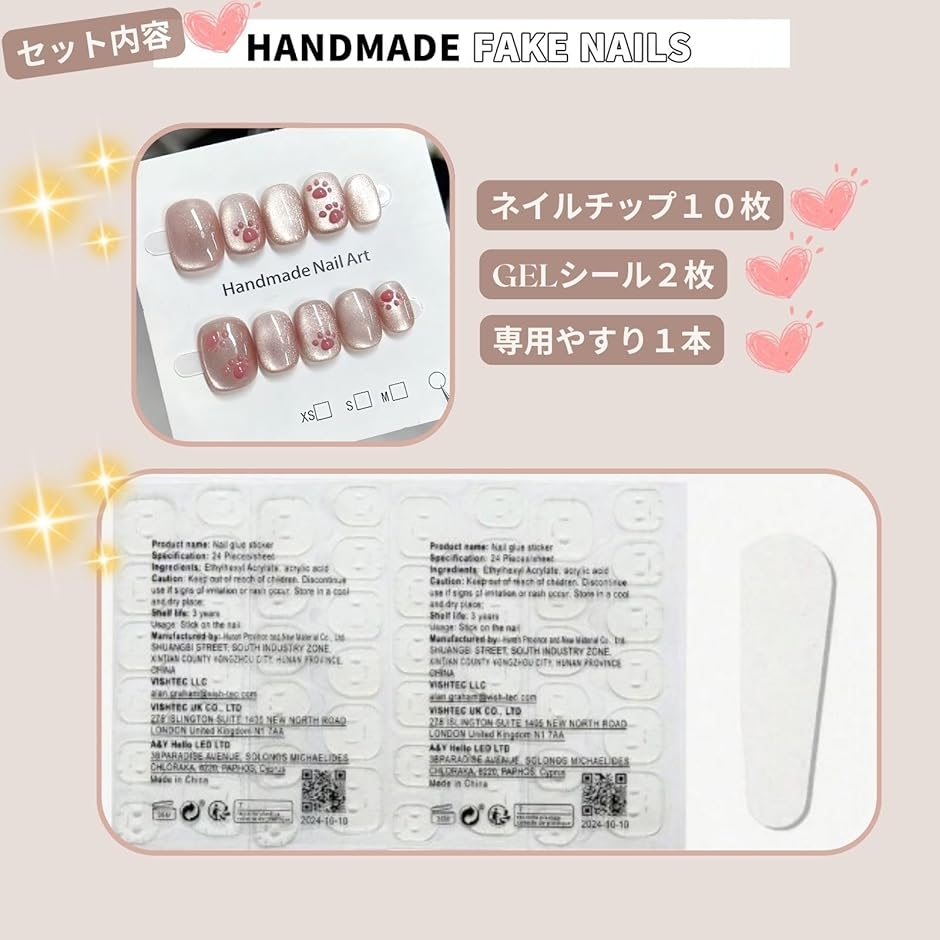 セット内容:ネイルチップ10枚,Gelシール2枚,ミニやすり1本