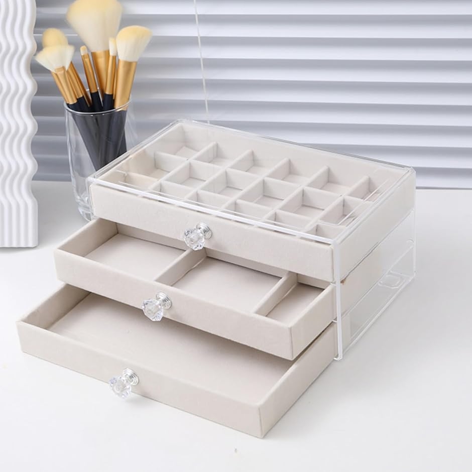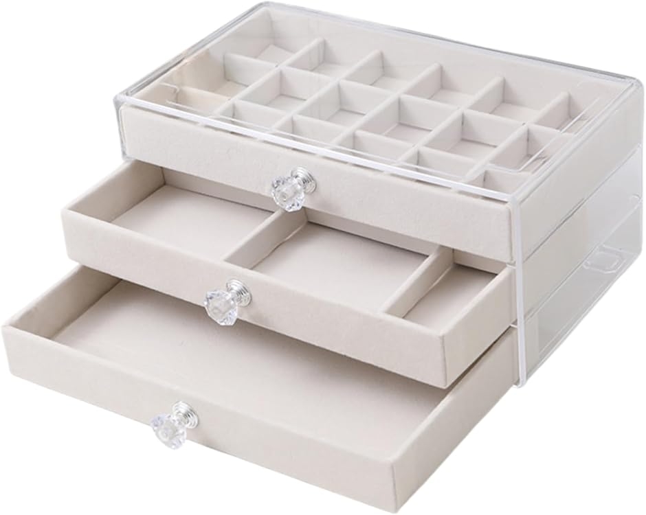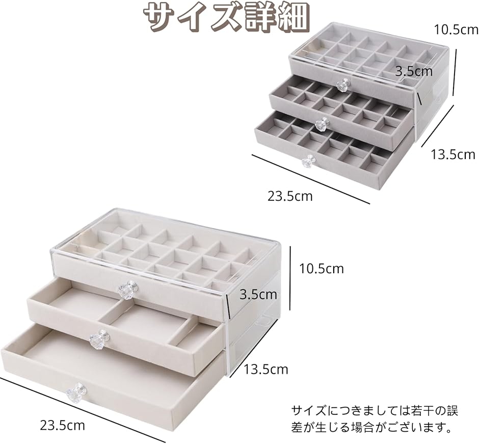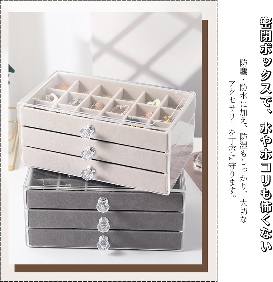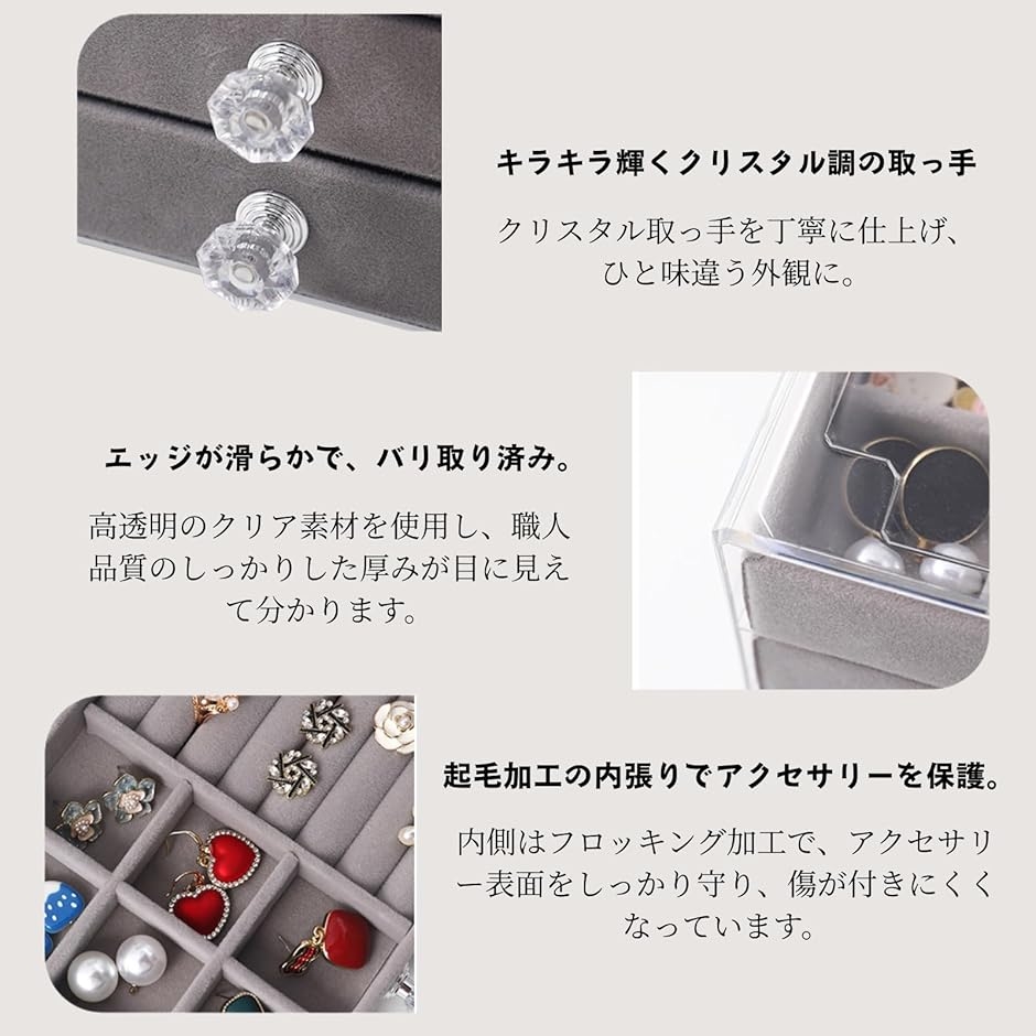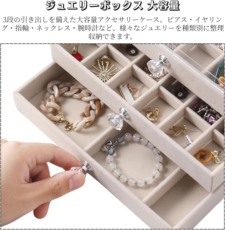 | 商品名 | アクセサリーケース 引き出し ジュエリーボックス 大容量 3段 イヤリング ピアス 仕切りボックス ディスプレイ収納 |