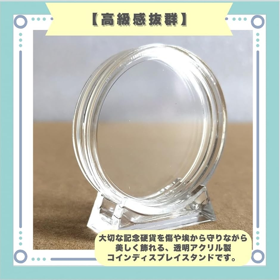「高級感抜群」大切な記念硬貨を傷や埃から守りながら美しく飾れる、透明アクリル製コインディスプレイスタンドです。