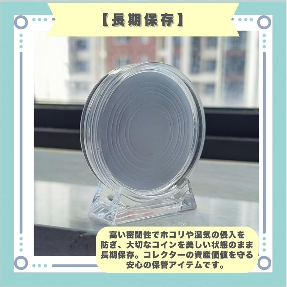 「長期保存」高い密閉性でホコリや湿気の侵入を防ぎ、大切なコインを美しい状態のまま長期保存。
