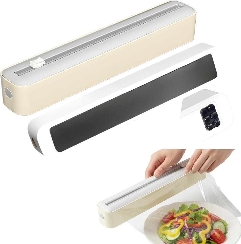 家庭用ラップホルダー・ロールカッターとして使える汎用デザインで、キッチンスペースになじむシンプルな外観が特徴です。