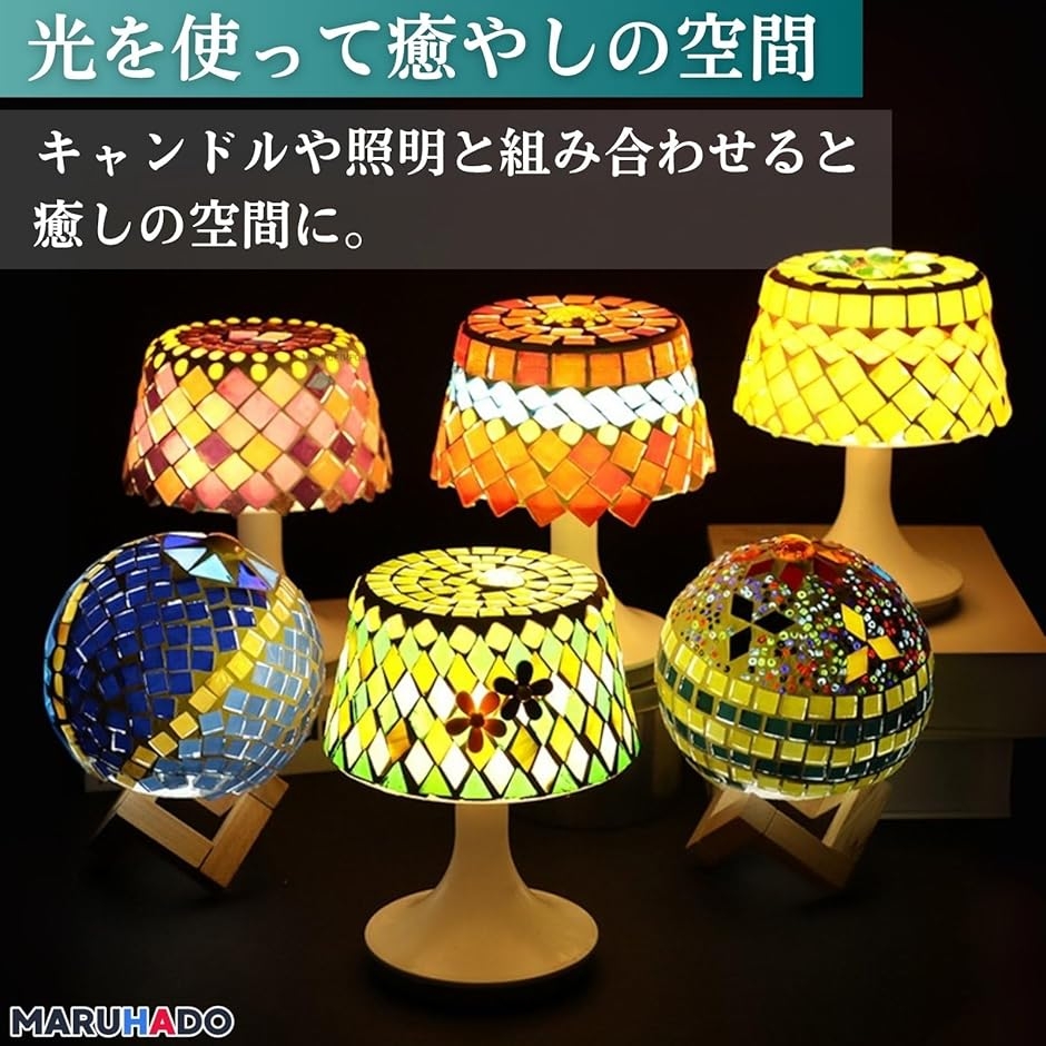 「照明とセットで癒しの空間」ステンドグラス風に仕上がる透明なガラスタイルは、キャンドルホルダーやランプシェードとの相性も抜群。