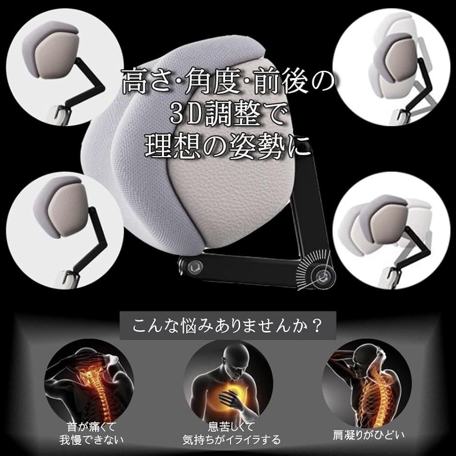 座る位置や体格に合わせて微調整することで、首・肩の負担を軽減し、長時間のデスクワークや在宅勤務も快適にサポートします。