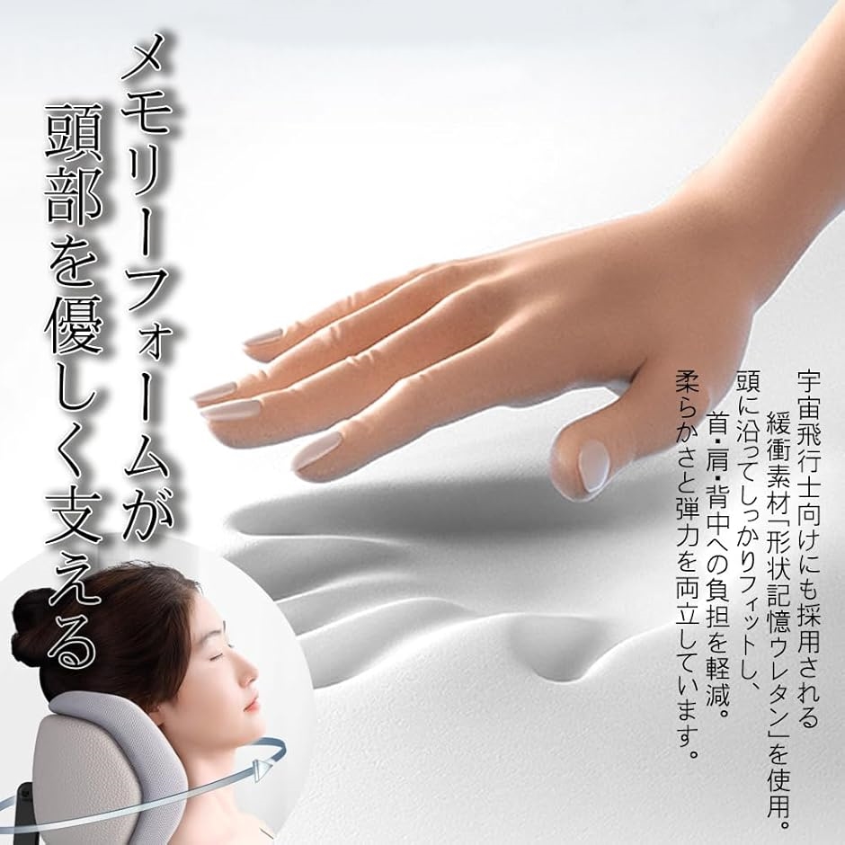 クッション部分には高密度メモリーフォームを採用し、頭部の形状にやさしくフィットしながらもしっかり支えてくれる設計。