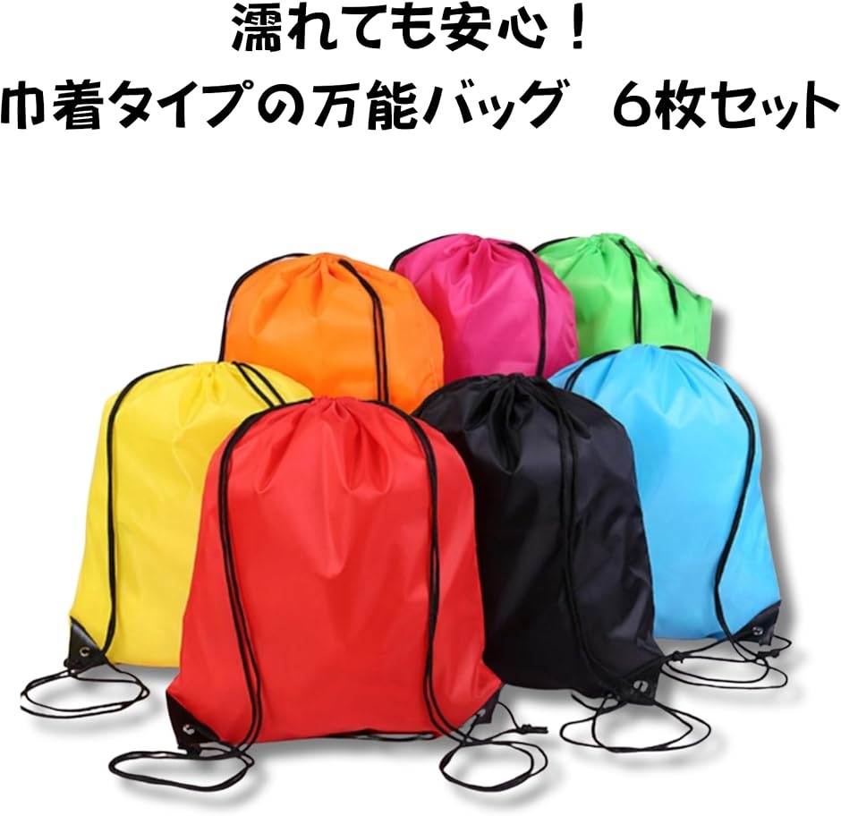 | 商品名 | ナップサック 巾着袋 防水 軽量 大容量 バッグ 体操服袋 ジムバッグ 部活 通学 スポーツ アウトドア 男女兼用 6枚セット |