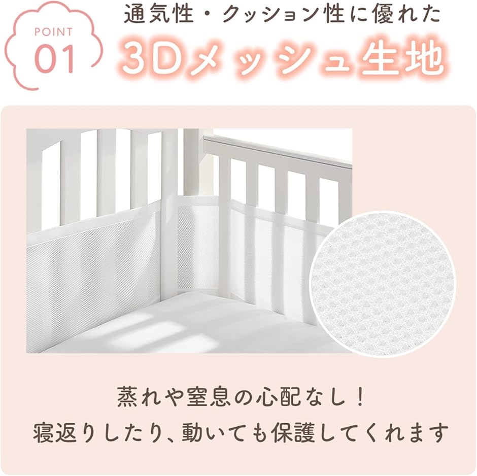 通気性に優れた3Dメッシュ構造により、窒息リスクを軽減しながら快適な睡眠環境を守ります。