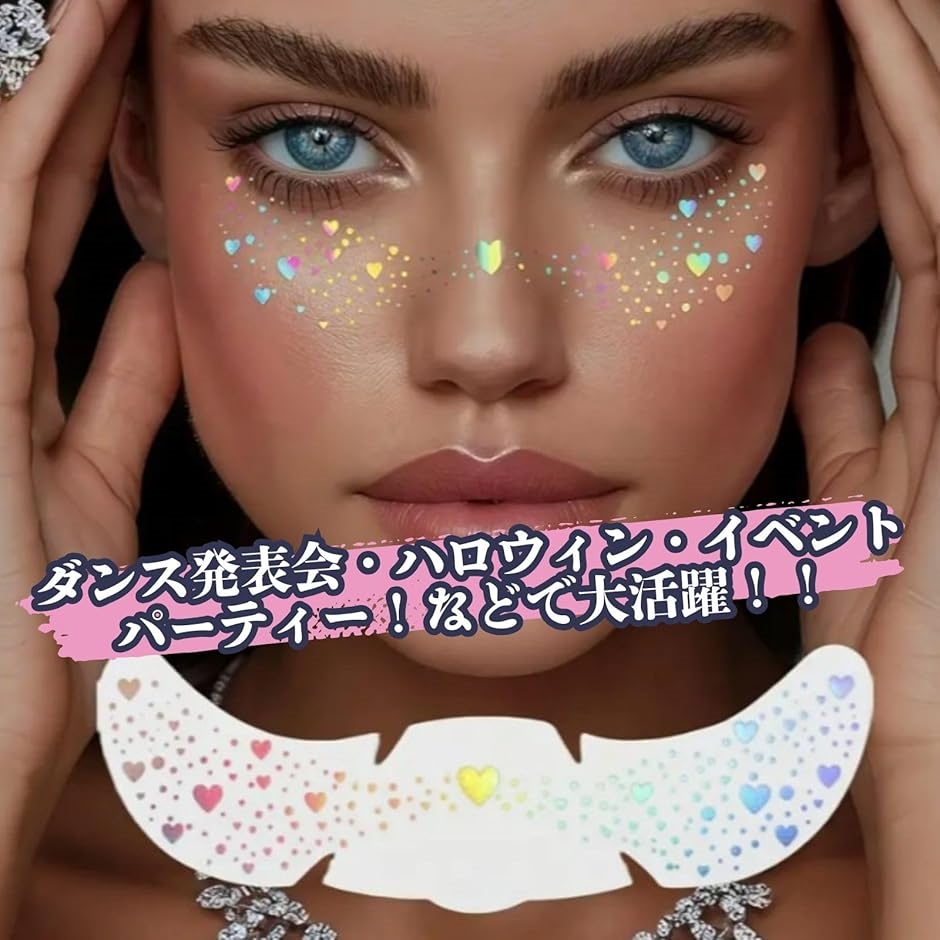 フェイスラインやまゆげ、おでこなど、お好みの場所に貼って、自分だけのオリジナルメイクを楽しみましょう。