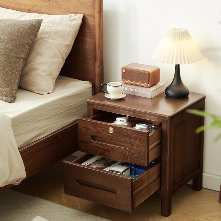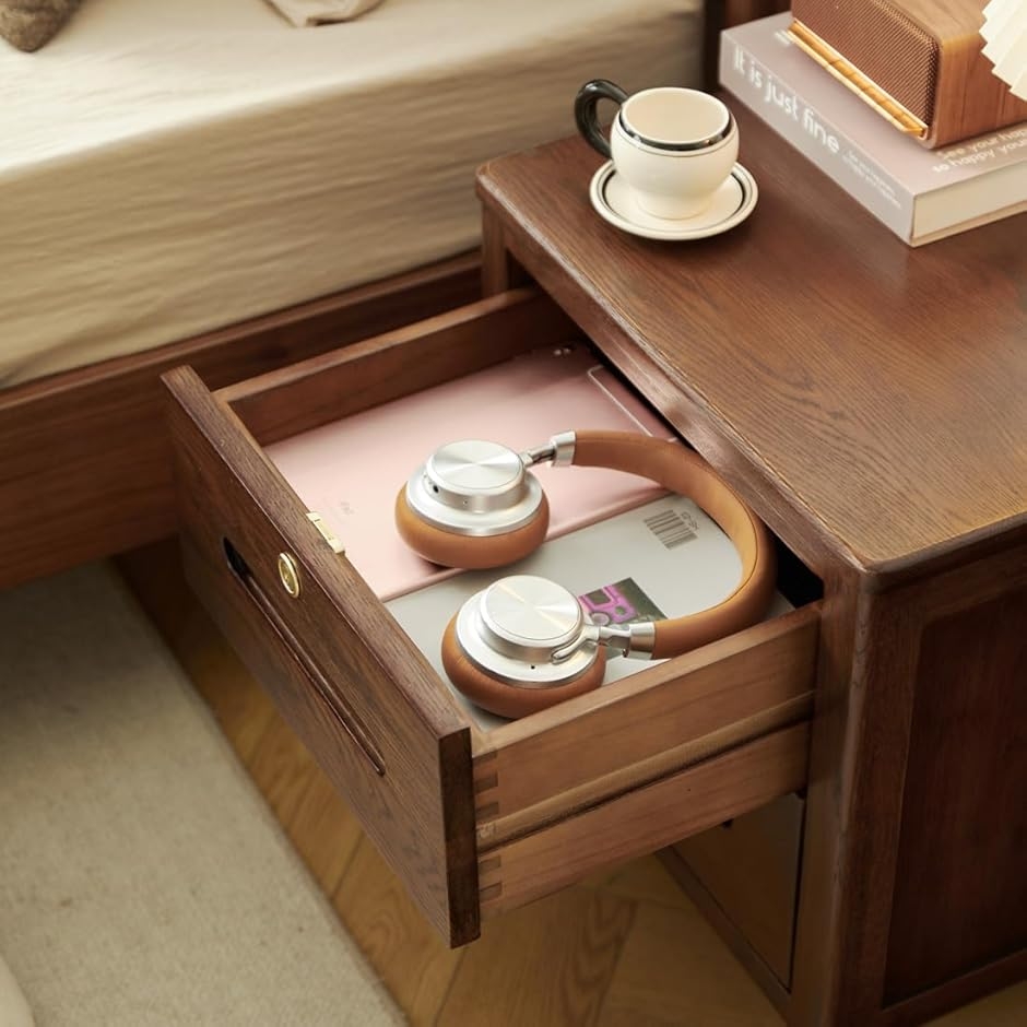 「収納楽々」引き出しが2つ付いており、本や雑誌、メガネ、時計、タブレット、ハンドクリームなどベッドサイドにあると便利な小物が十分に収納できます。