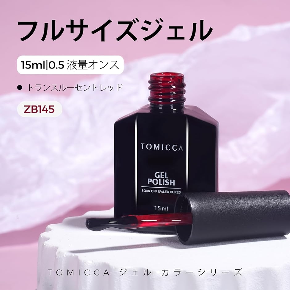 内容量:レッドジェル(15ml/本)、TOMICCA UV LED ジェルネイルポリッシュ、ジェルネイルポリッシュセットは、UV/LED ネイルドライヤーで硬化する必要があります。