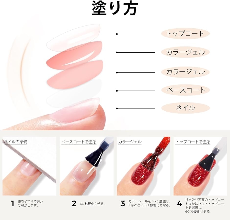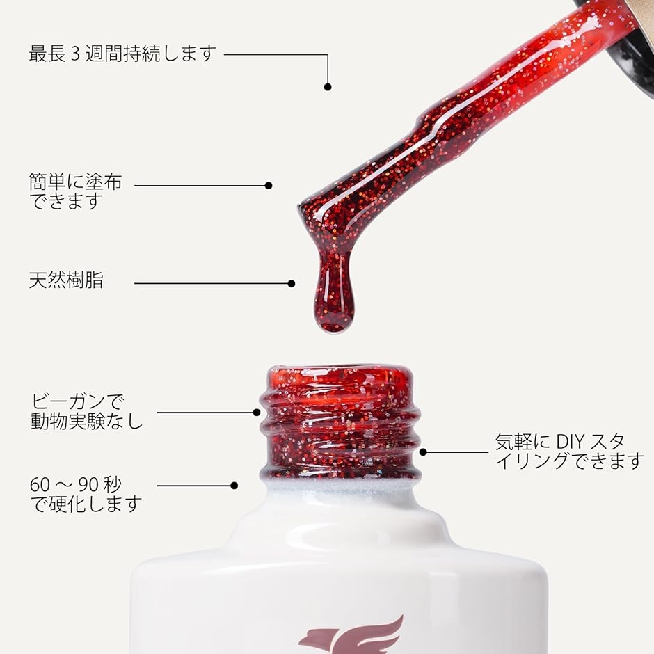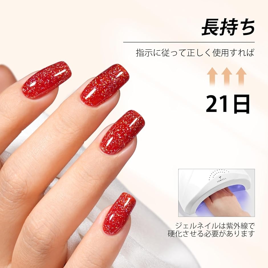 内容量: レッドジェル(8ml/本)、TOMICCA UV LED ジェルネイルポリッシュ、ジェルネイルポリッシュセットは、UV/LED ネイルドライヤーで硬化する必要があります。
