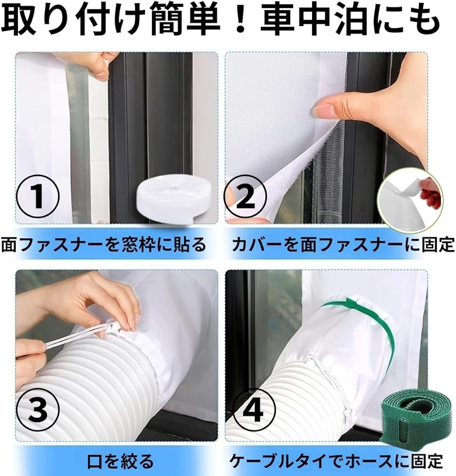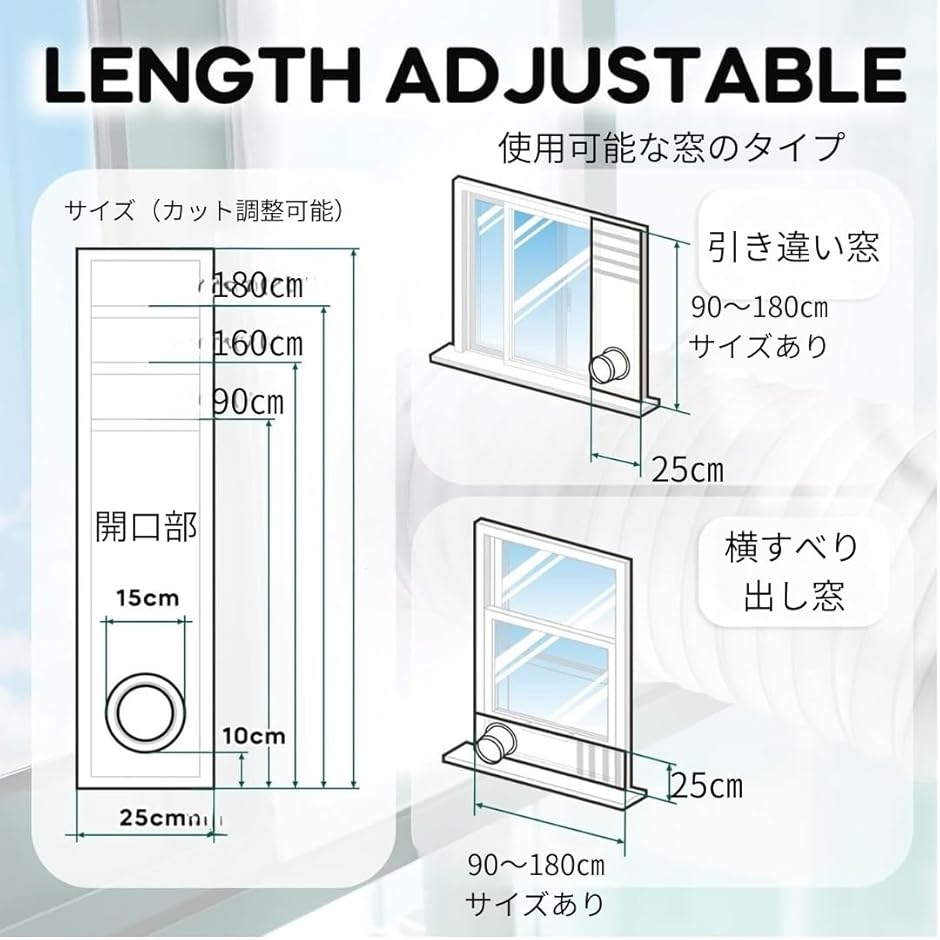 「対応範囲が広い」窓付きエアコン、可動式クーラー、排気ダクトなど、さまざまな機種に使えるサイズ感。